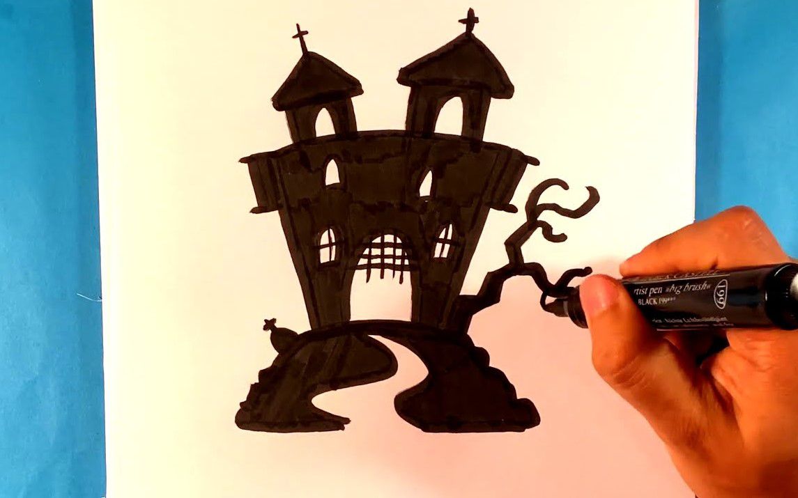 how to draw a haunted house silhouette